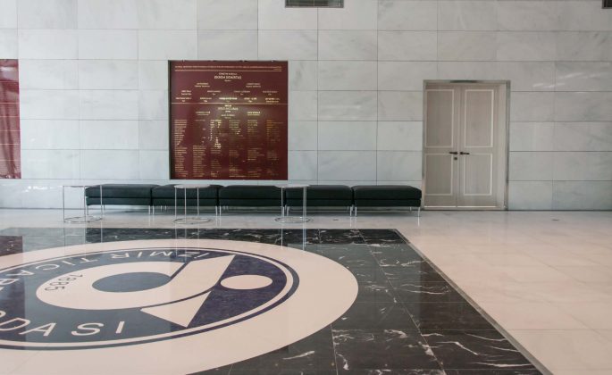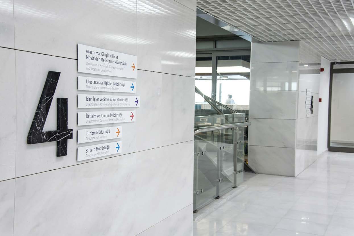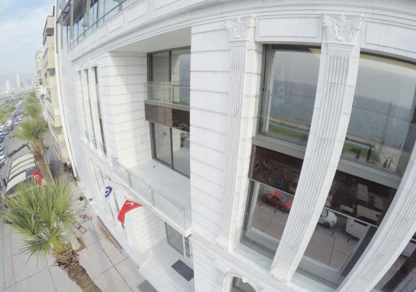 We’re in Kordonboyu, one of the most beautiful places of İzmir, accompanied with the gulf’s view… Among the lined-up buildings resembling a big concrete wall deprived of any historical texture, one building shines through. It has both an appearance integrated with the history of the city and a modern design symbolising the future. It sparkles with Turkey’s world-wide famous marble, Kemalpaşa White. This is the new service building of İzmir Chamber of Commerce with a history of 133 years and more than 80 thousand members…