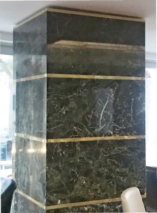 Another one of the favorite stones from Turkish natural stone industry, which catches the eye in İTO’s new service building, is Verde Antico. The columns in board of directors department of the building have been covered with this green marble that was produced by Alacakaya Marble.