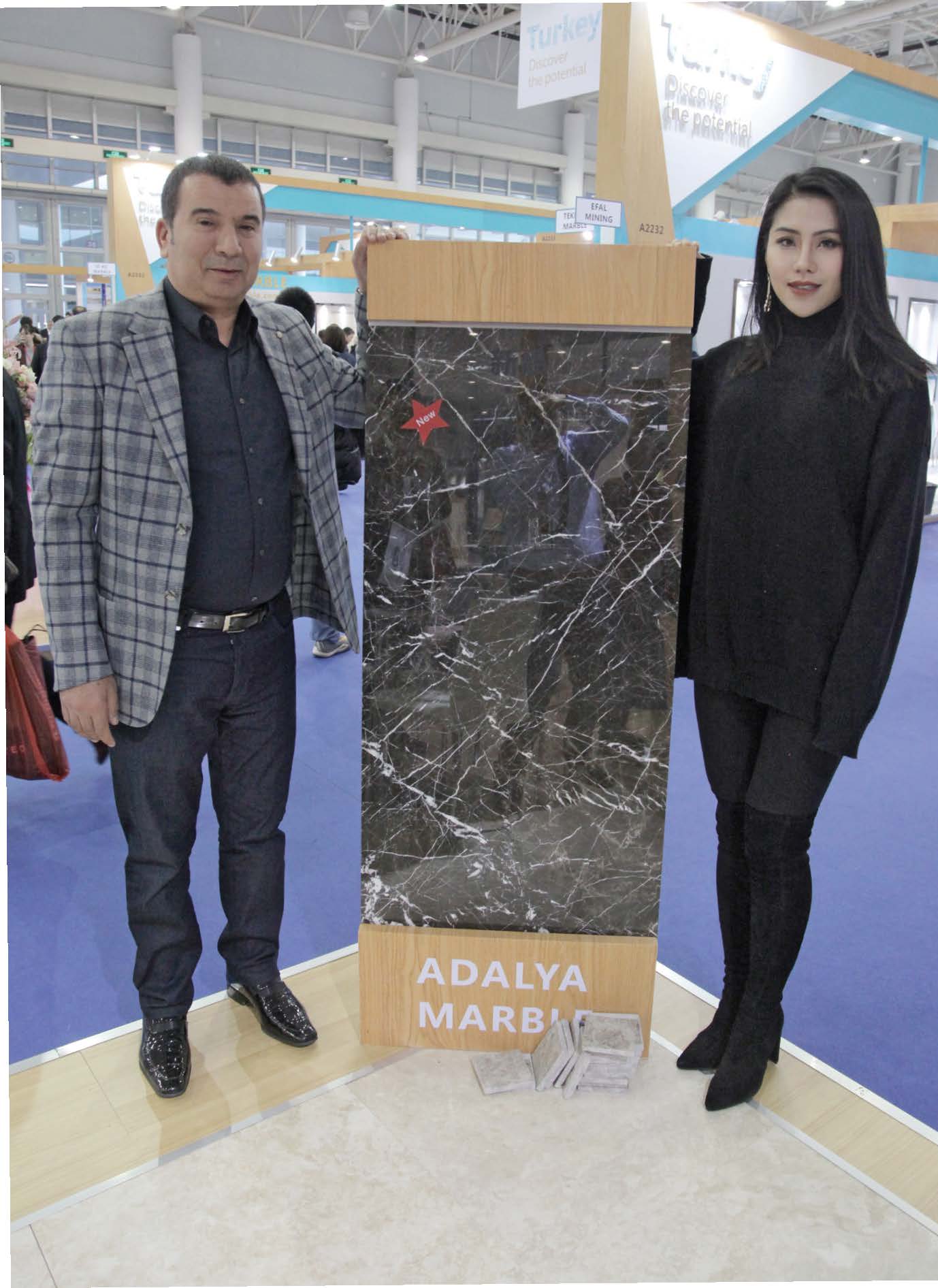 Being one of the giants of Turkey in natural stone production with its eight quarries and five factories, Adalya Marble has launched two new stones to the market. Jüpiter Brown extracted from the firm’s Akseki Quarry, and Eva Grey produced in Sütçüler Quarry, were presented to the sector in Xiamen Fair for the first time. Eva Grey with its eye-catching colors and Jüpiter Brown with its exellence for projects, won acclaim of not only Chinese visitors but also Australian and Arab visitors. Osman Gülmez, board chairman of Adalya Marble, stated that Eva Grey and Jüpiter Brown are stones with high production capacity and they expect the stones to be used in world-wide famous projects in the upcoming years.