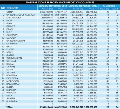 Yes, the 2bn dollar treshold is to be exceeded soon. It is very likely that total revenue target will be met. But the decrease in price per ton must be highlighted once more. While natural stone price per ton was 277 dollars in the first 11 months of last year, it is down to 259 dollars in 2017. And this situation is the primary problem for Turkish natural stone sector to be dealt with soon.
