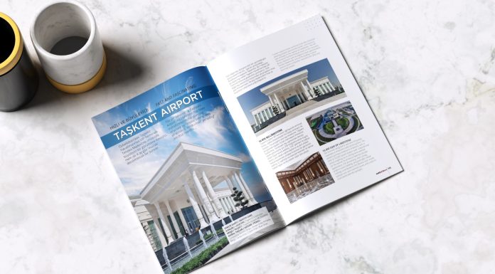Türk doğal taşı, dünyanın dört bir yanındaki göz alıcı projelerin tercihi… İşte bir yenisindeyiz… Özbekistan’ın başkenti Taşkent’te. 561 hektarlık bir alana inşa edilen Taşkent Havalimanı’nda VİP Terminal binasına gözlerimizi çeviriyoruz. Türk doğal taş sektörünün birbirinden şık projelere imza atan firmalarından Tenoka Madencilik’in ‘hızlı ve büyüleyici’ çalışmasına yoğunlaşıyoruz.