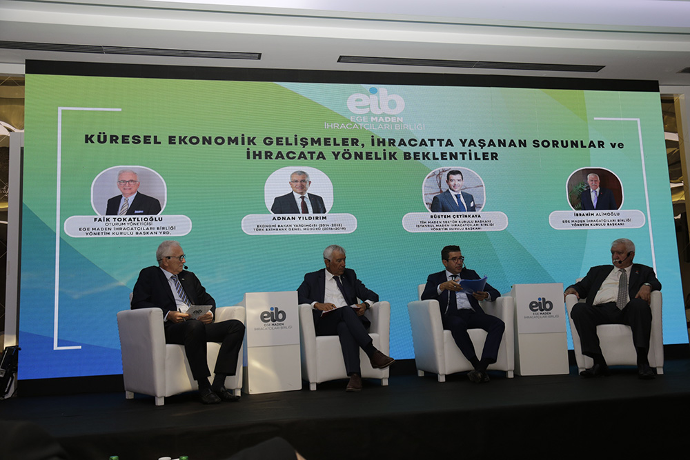 Ege Maden İhracatçıları Birliği Yönetim Kurulu Başkan Yardımcısı Faik Tokatlıoğlu’nun moderatörlük yaptığı “KÜRESEL EKONOMİK GELİŞMELER, İHRACATTA YAŞANAN SORUNLAR VE İHRACATA YÖNELİK BEKLENTİLER” oturumunda ise 2014-15 yıllarında Ekonomi Bakan Yardımcılığı, 2016-2019 yılları arasında Türk Eximbank Genel Müdürlüğü yapan Adnan Yıldırım, TİM Maden Sektör Kurulu Başkanı ve İMİB Başkanı Rüstem Çetinkaya, Ege Maden İhracatçıları Birliği Yönetim Kurulu Başkanı İbrahim Alimoğlu yer aldı.